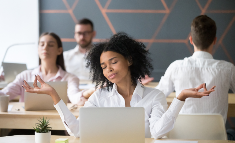 Personalised meditation sessions tailored to workplace stress, mental load, and emotional pressure.